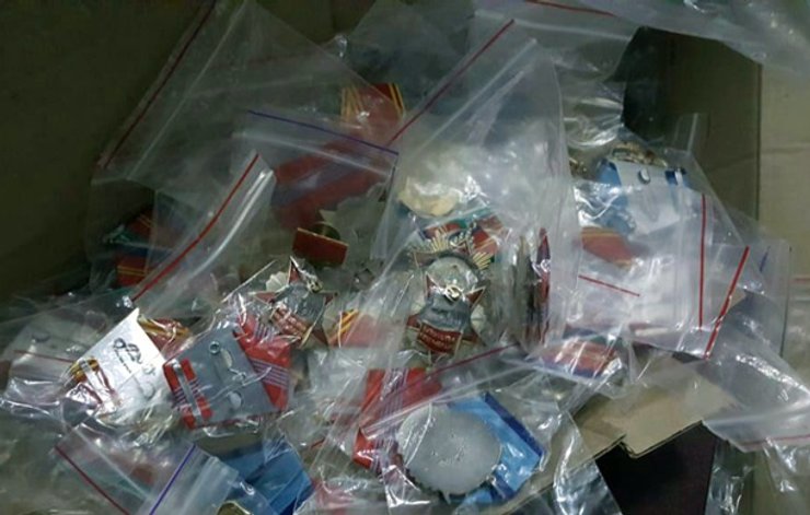 Во время пограничного контроля, в его автомобиле правоохранители нашли коробки с орденами, медалями, документами к ним, более 900 паспортных бланков СССР и другие предметы с подобной символикой.