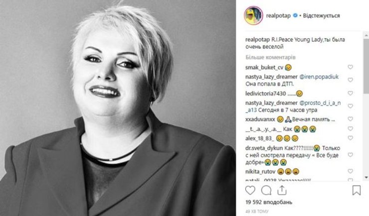"R.I.Peace Young Lady, ты была очень веселой", - написал украинский рэпер Алексй Потапенко (Потап).