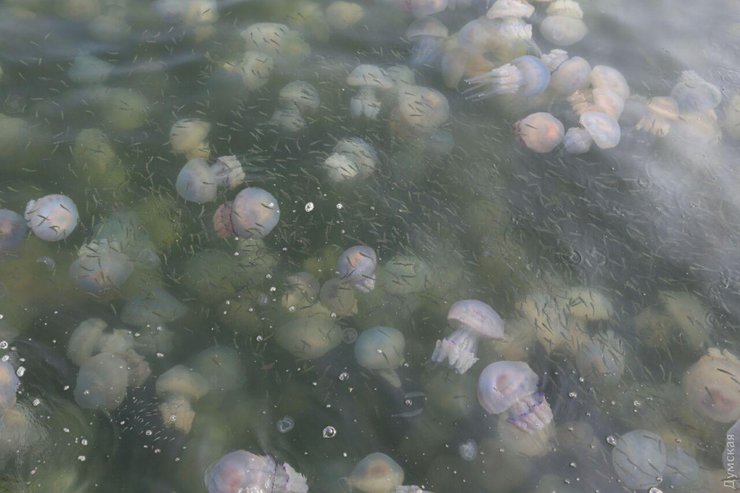 В Одесской области зафиксированы необычные природные явления. Так, в акватории Одесского порта можно наблюдать огромное количество медуз разного цвета и размера. Встречаются экземпляры от молочного до синего с красноватым оттенком цвета. Размер некоторых медуз достигает до 30 сантиметров в диаметре.