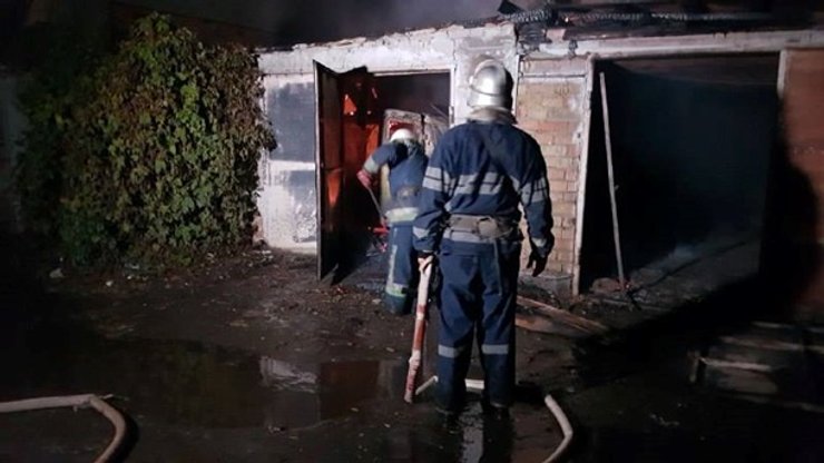 Отмечается, что сообщение о пожаре поступило в 22:36. Площадь пожара составила 300 кв. м. Установлено, что возгорание произошло в 2-этажном здании станции техобслуживания с дальнейшим распространением огня на два рядом расположенных гаража.
