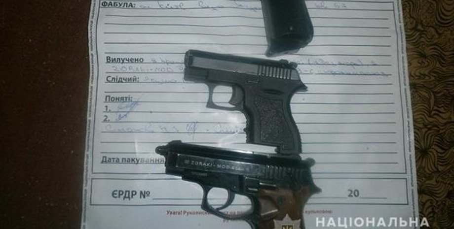 По словам начальника Деснянского управления полиции Александра Косовского, во время осмотра помещения правоохранители обнаружили 200 граммов конопли, три пистолета с патронами и запал к гранате.