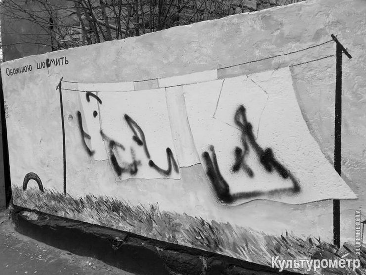 Напомним, произведения Гамлета Зиньковского не первый раз уродуют вандалы. Так, в Харькове, его мурал на стене трансформаторной будки спровоцировал настоящее стрит-арт-противостояние.