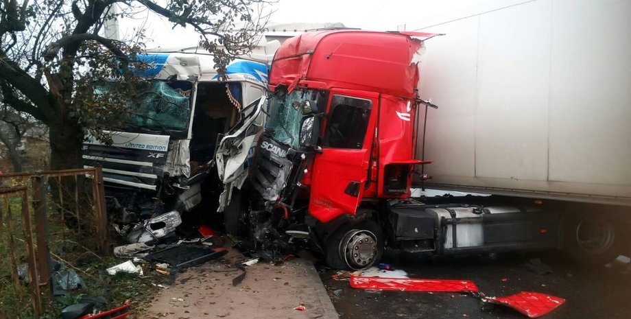 Под Житомиром столкнулись две фуры и Москвич, трасса перекрыта