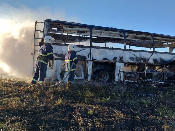 Пожарные, прибыв на место, выяснили, что во время пожара в салоне автобуса никого не было.