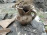 В проходе уже нашли разбитый кувшин и керамические осколки.
