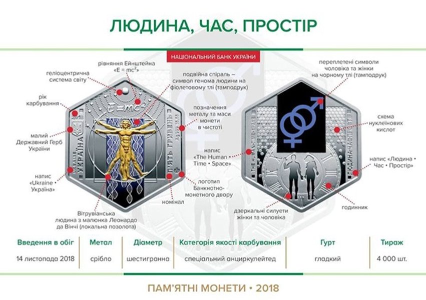 Всего введены в оборот четыре памятные монеты: "Эра мира", "Эра перемен", "Эра технологий" и "Человек, время, пространство". Они были выпущены номиналом в 5 грн и посвящены науке.