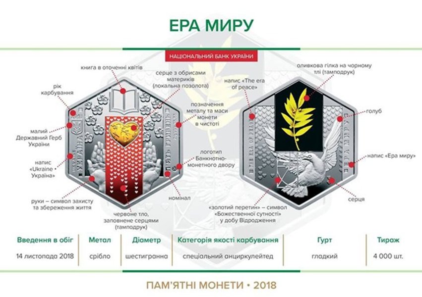 Монеты изготовлены из серебра 999 пробы и имеют номинал пять гривен