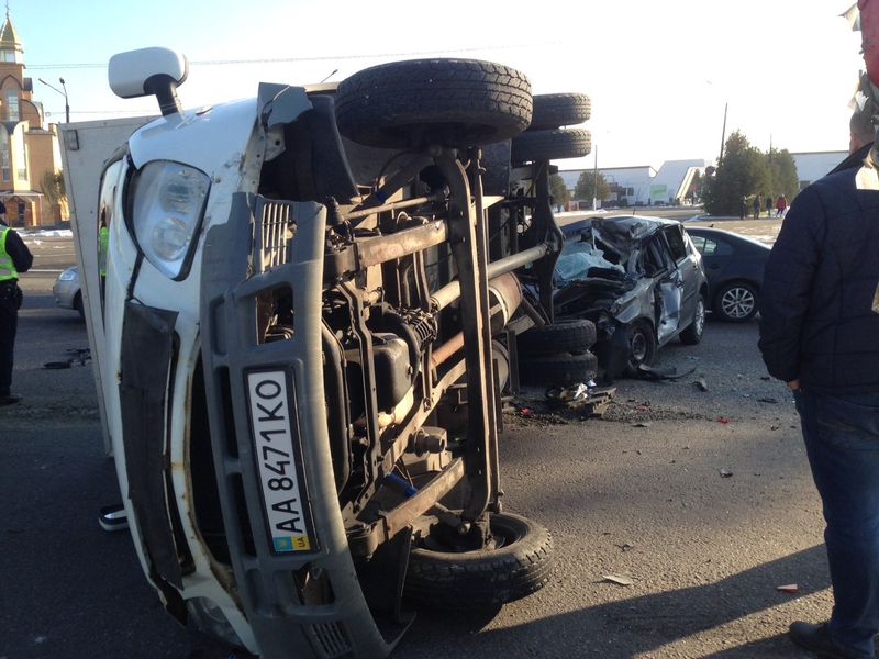 Первым, кто спровоцировал цепную реакцию аварий был водитель легкового автомобиля, который на полной скорости врезался в бок грузовой Газели. Грузовик опрокинулся набок поперек полосы. У легкового Volkswagen полностью уничтожен капот.