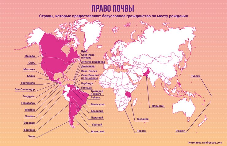 Говоря о проблеме иммиграции, Дональд Трамп преувеличил: из 195 стран помимо США еще порядка 30 государств предоставляют гражданство по праву места рождения. Это в основном страны Северной и Южной Америки, а также Карибского бассейна. Среди них Канада, Мексика, Бразилия, Аргентина.