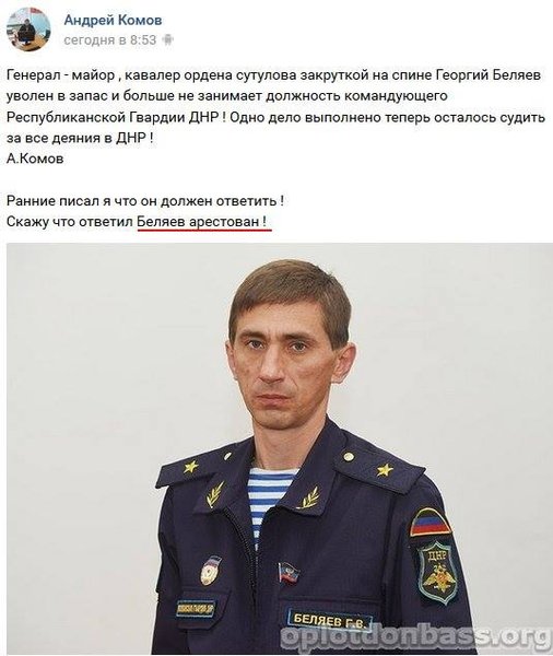 В оккупированном Донецке арестован бывший "командир республиканской гвардии "ДНР" Григорий Беляев.
