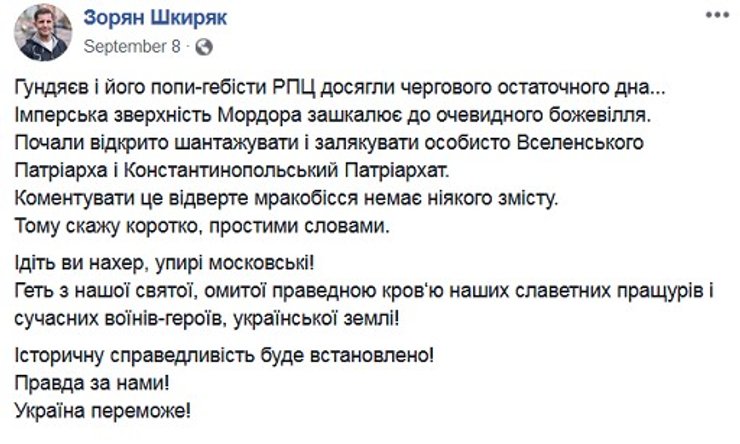 В социальных сетях остались и высказывания народного депутата Игоря Мосийчука о том, что Константинопольскому Патриархату нужно передать не только Андреевскую церковь, но и "какой-нибудь из храмов, который сейчас находится в пользовании секты схизматиков УПЦ МП", что также можно было бы трактовать как оскорбление чувств верующих или призывы к захвату храмов.