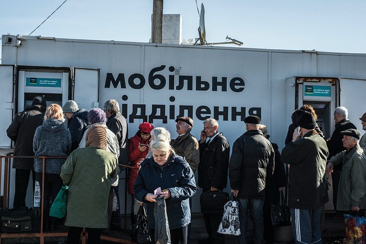 За пенсией. КПВВ "Станица Луганская", 2 ноября. Большинство живущих в "ЛНР" пожилых людей приезжает в Станицу Луганскую, чтобы обналичить пенсию, которую им начисляет Украина
