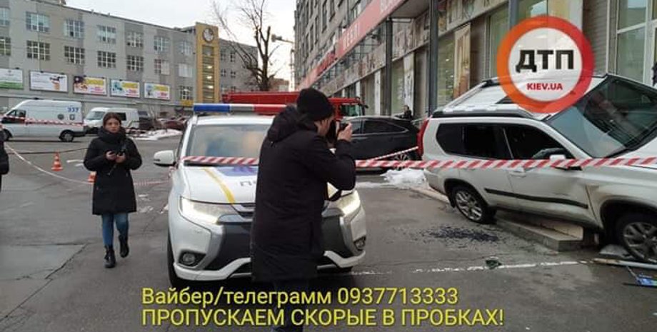 "Перестрелка и ДТП в Киеве на Сурикова: Nissan залетел на ступеньки магазина. Много полиции, введен оперативный план "Сирена", - говорится в сообщении.