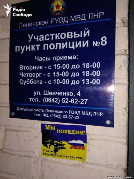 В оккупированном Луганске сегодня, 6 декабря, расклеили стикеры с поздравлениями ко Дню Вооруженных сил Украины.