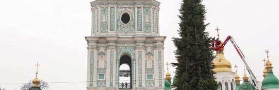 В Киеве на Софийской площади установили 27-метровую новогоднюю елку. Об этом сообщается в Facebook на странице проекта Folk Ukraine, который занимается подготовкой новогодней локации.