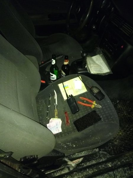 А также две радиостанции, ножи и несколько уже пустых бутылок из-под спиртного.