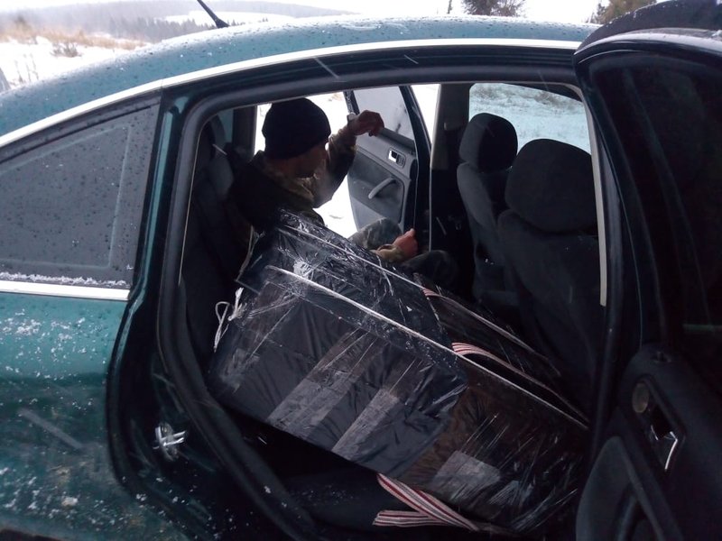 В салоне авто и в багажнике нашли четыре ящика с сигаретами, обернутые в черный полиэтилен и подготовленных к дальнейшей транспортировки через границу.