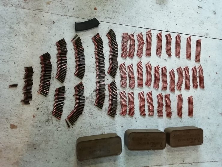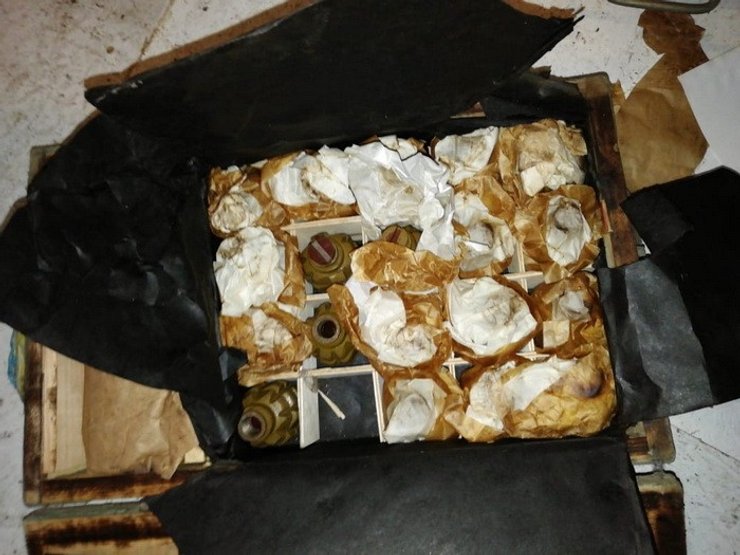 Всего правоохранители обнаружили 21 гранату Ф-1, 3 гранаты РГД-5, 15 гранат для подствольного гранатомета ВОГ, а также свыше трех килограммов тротила. Кроме того было изъято двадцать запалов к гранатам Ф-1, три дымовые шашки и три оцинкованных ящика с патронами различного калибра.