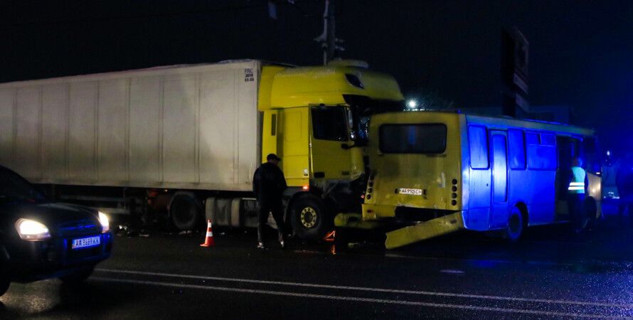 Под Киевом фура устроила ДТП с маршруткой и четырьмя авто