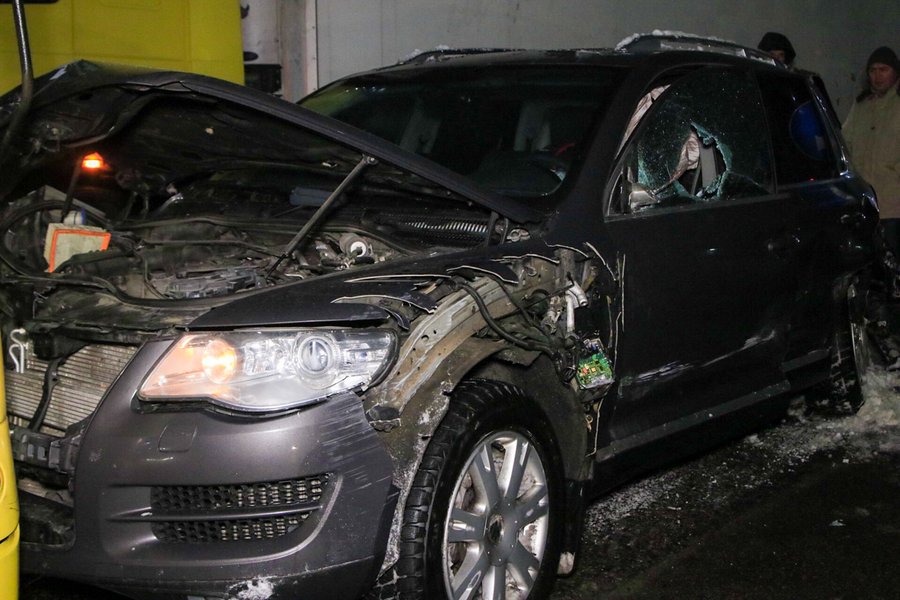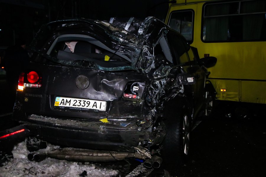 Маршрутка на тот момент была без пассажиров. От удара ее развернуло на 90 градусов, а в момент столкновения она зацепила еще и Mercedes ML350.