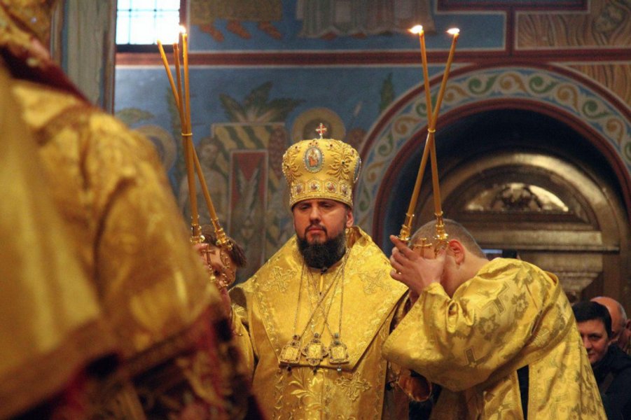 Это его первая литургия на посту предстоятеля автокефальной Православной церкви Украины.