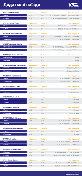 Продажа билетов открылась на поезда из Киева в Ужгород, Львов, Ковель и Днепр, и из Одессы — в Ужгород.
