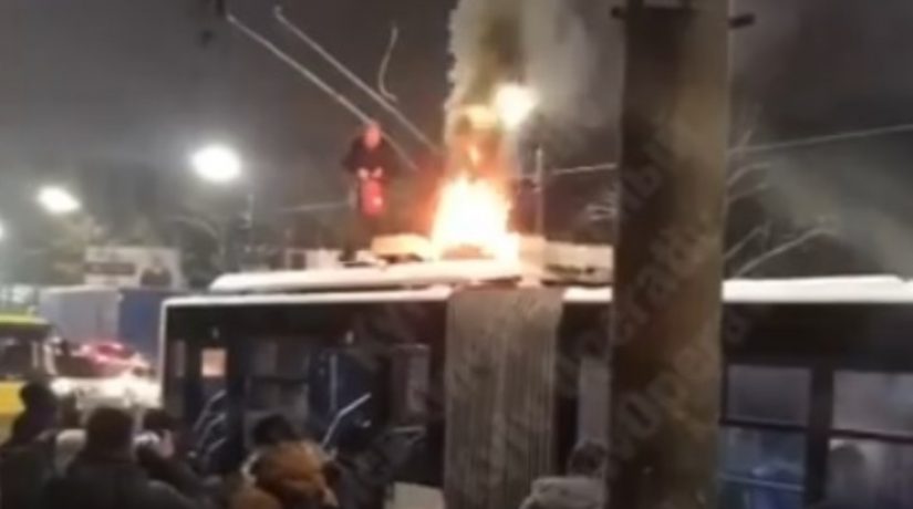 В Киеве загорелся троллейбус с пассажирами