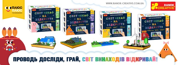 Компанія "Ранок-креатив" разом з телеканалом "ПЛЮСПЛЮС" розробили нову захоплюючу та пізнавальну серію наборів для експериментів "Світ чекає на відкриття", створену на базі одноіменного мультфільму.