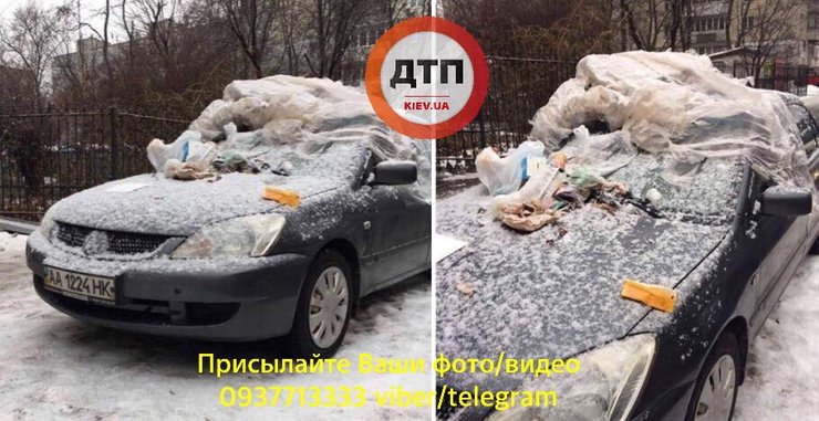 В Киеве автомобиль "героя парковки" засыпали мусором