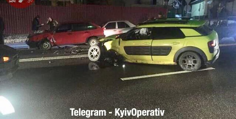 Под Киевом пьяный водитель выехал на встречку и протаранил 7 машин