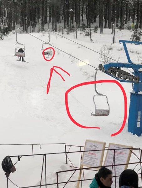 "День был прекрасный, каталочка супер, и тут мы поехали "в елки". Садимся… на кресельный подъемник Вершина, опускаем ту железку, на которую ставят лыжи и борд (понятия не имею, как она называется, фото прикреплю), проезжаем метров 15-20, и тут эта самая железка вырывается из креплений и летит вниз. Вместе с нами. Точнее, мы падаем с подъемника вместе с ней", - написала Анна.