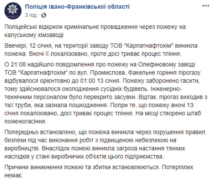 Пожар на заводе "Карпатнефтехим" в городе Калуш (Ивано-Франковская область) возник из-за нарушения правил безопасности.