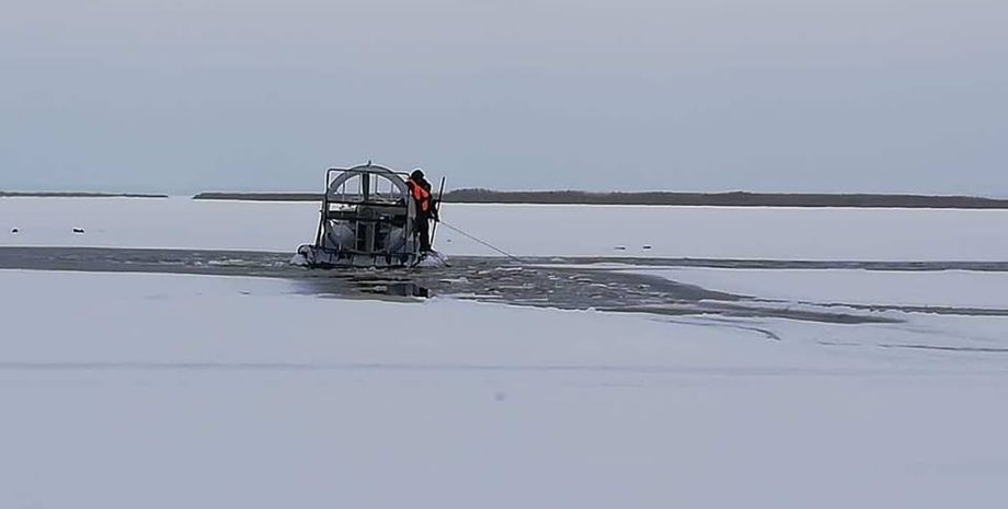 На Киевском водохранилище самодельный снегоход провалился под лед, есть жертвы