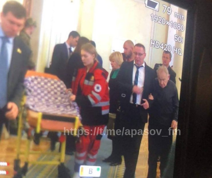 Шухевич с помощью врачей самостоятельно добрался до машины медиков, отказавшись от каталки. Его госпитализировали.