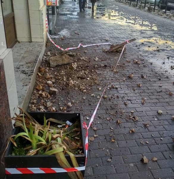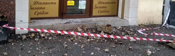 Инцидент произошел в центре Львова 17 января. Обвалился балкон прямо над входом в ювелирный магазин. Камни и осколки кирпичей полетели в прохожих. Об этом сообщает "Горячая линия города Львова" в Facebook.