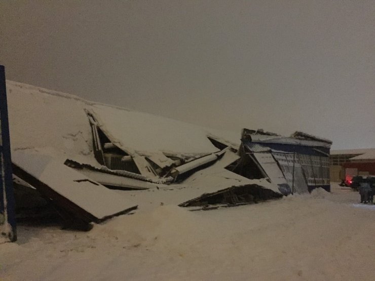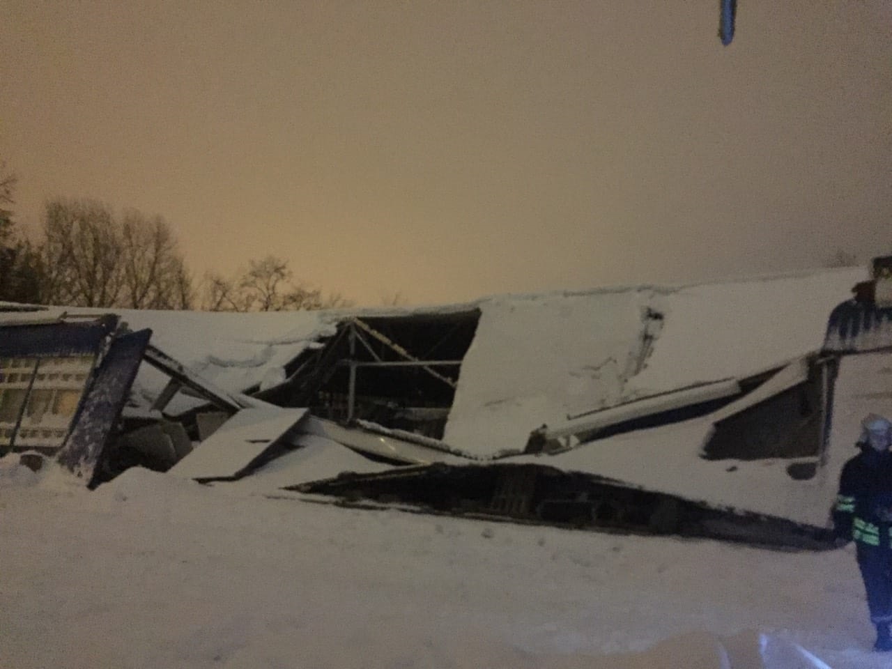 Когда спасатели прибыли на место, то обнаружили, что крыша обвалилась сразу в двух местах. На общей площади 900 м.кв.
