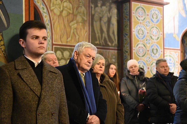 Посол Республики Польша Ян Пекло на службе в Михайловском соборе (Фото: Zahar Zaliznyi/Facebook)
