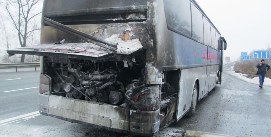 "4 февраля в 7:44 в Службу спасения "101" от водителя международного рейсового автобуса Setra, который двигался по маршруту Гданьск-Киев, поступило сообщение о том, что в его транспортном средстве произошло возгорание моторного отсека", - говорится в сообщении.