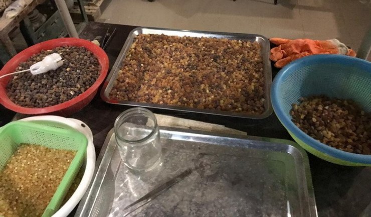 Готовую продукцию отправляли в Азию. При обыске силовики изъяли шесть тонн необработанного янтаря, уже разобранного по размеру. Полтонны обработанного камня и пятнадцать килограмм готовых к транспортировке изделий, "черную бухгалтерию" и большую сумму наличных.