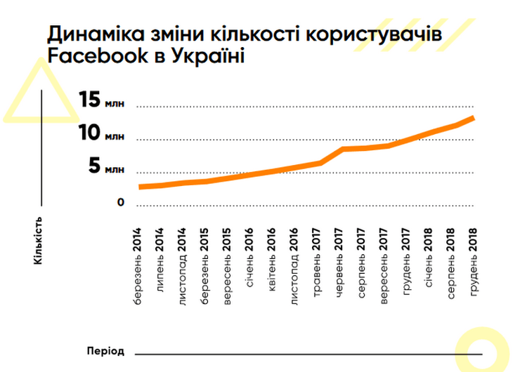 За прошедший 2018 год количество украинских пользователей в соцсети выросло на 3 миллиона человек, а за прошедшие 5 лет – на 9,8 миллионов человек. Еще в мае 2017 года украинцев в Facebook было 8,3 миллиона. Таким образом страна стала третьей в мире по темпам роста количества пользователей соцсетью, на первых двух местах оказались Индия и Филиппины.