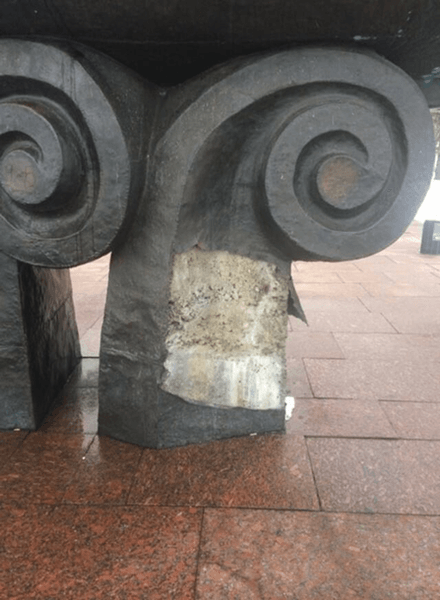"Неизвестные злоумышленники ограбили основание памятника, которое сделано в виде трех больших волн. С одной из них вандалы ободрали около квадратного метра медной обшивки и теперь в этом месте зияет бетон", - говорится в сообщении.