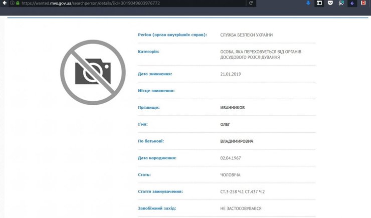 Иванникову предъявлено подозрение по ч.1 ст. 258-3 (создание террористической группы или террористической организации, руководство такой группой или участие в ней) и ч. 2 ст. 437 (ведение агрессивной войны) Уголовного кодекса.