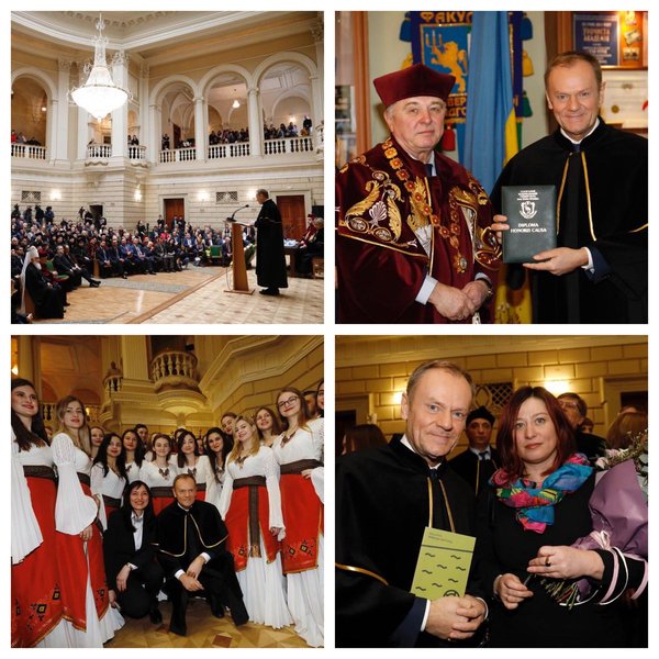 Президенту Европейского совета Дональду Туску вручили звание почетного доктора от Львовского национального университета имени Ивана Франко.