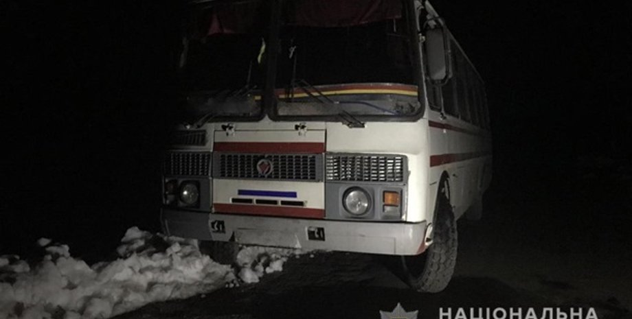 Отмечается, что ночью 25 февраля местная полиция получила информацию, что на трассе при въезде в село стоит подозрительный автобус. На месте полиция нашла белый автобус марки ПАЗ, который стоял в снегу на обочине.