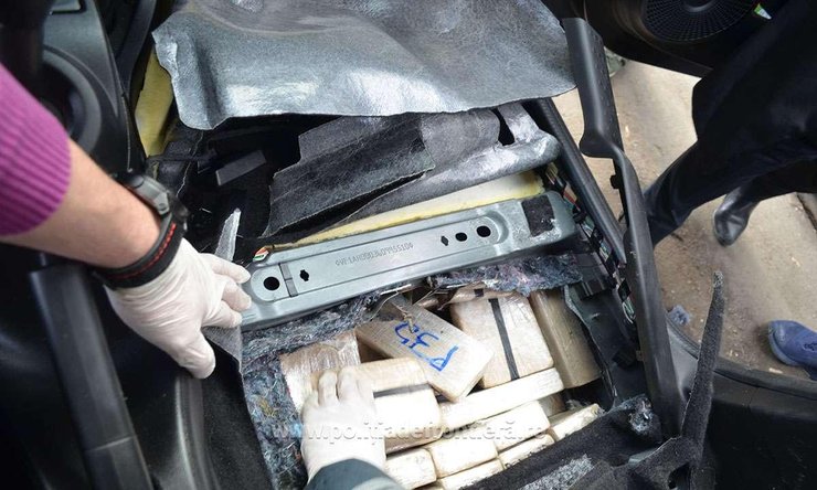 "В полу автомобиля было обнаружено специально разработанное пространство, в котором находилось 167 упаковок с коричнево-желтым веществом, вероятно, из категории наркотиков из высокой группы риска", - сообщили в пресс-службе.