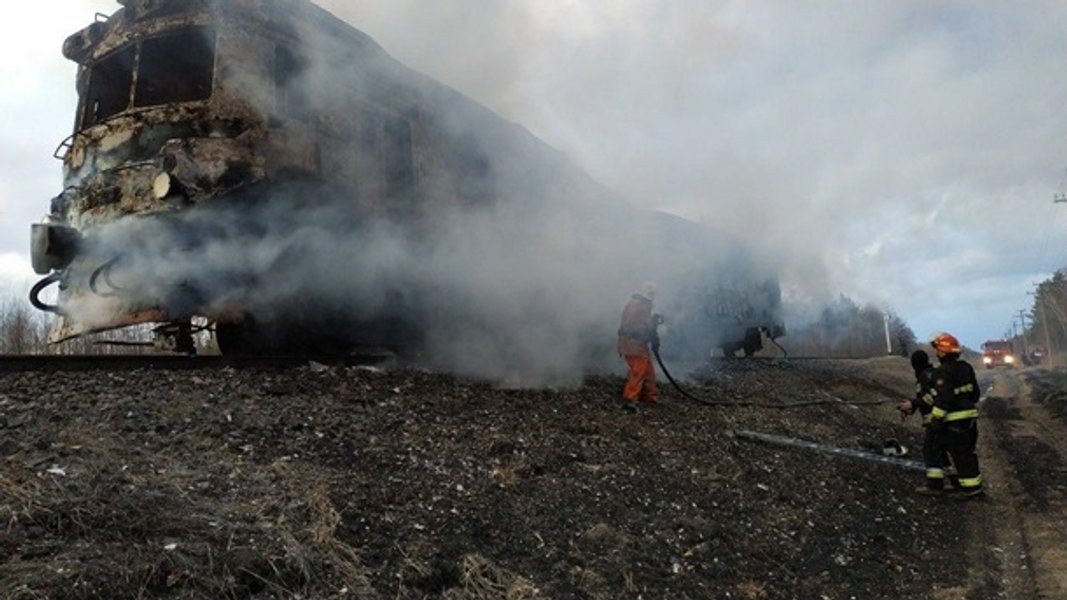 Согласно сообщению, пожар случился в 16:40 вблизи села Немовичи. Горело машинное отделение поезда.