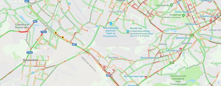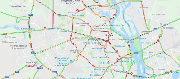 В преддверии 8 марта Киев увяз в многочисленных пробках, также было зафиксировано большое количество ДТП. Об этом свидетельствуют данные сервиса Google-карты.