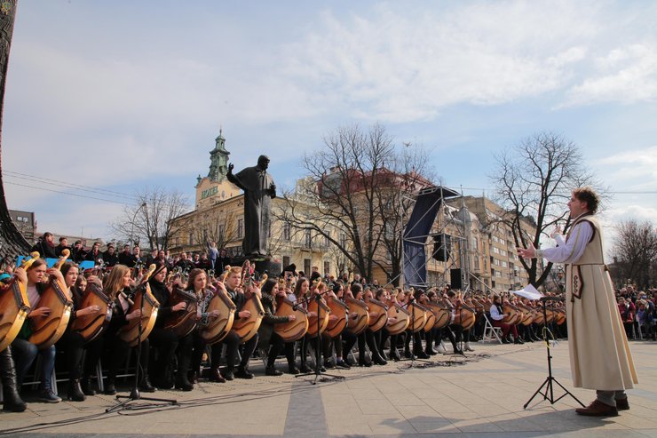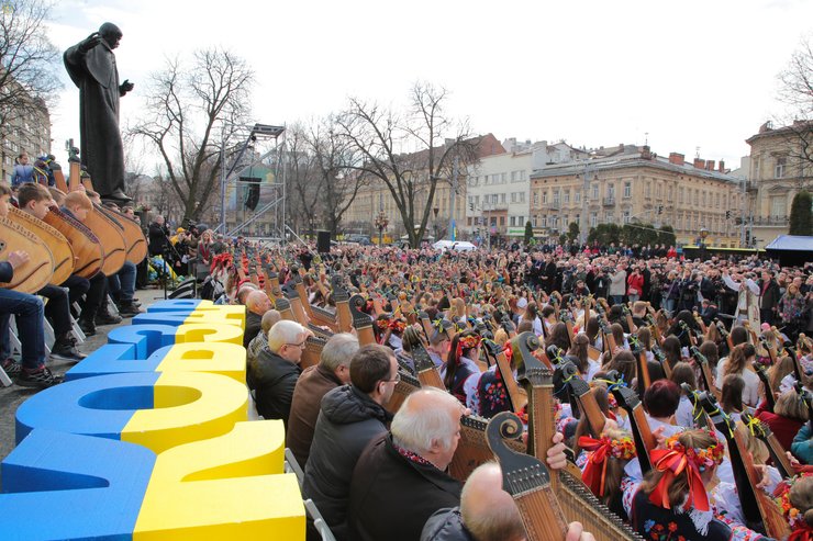 Львовские бандуристы установили рекорд Украины, одновременно исполнив песню на стихи Тараса Шевченко.
