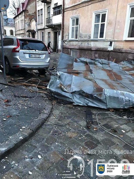 Коме этого, глава Галицкой районной администрации Андрей Зозуля заявил, что коммунальные службы сделают временное перекрытие для домов, где ветер повредил крыши, также будут убраны части кровли с тротуаров.