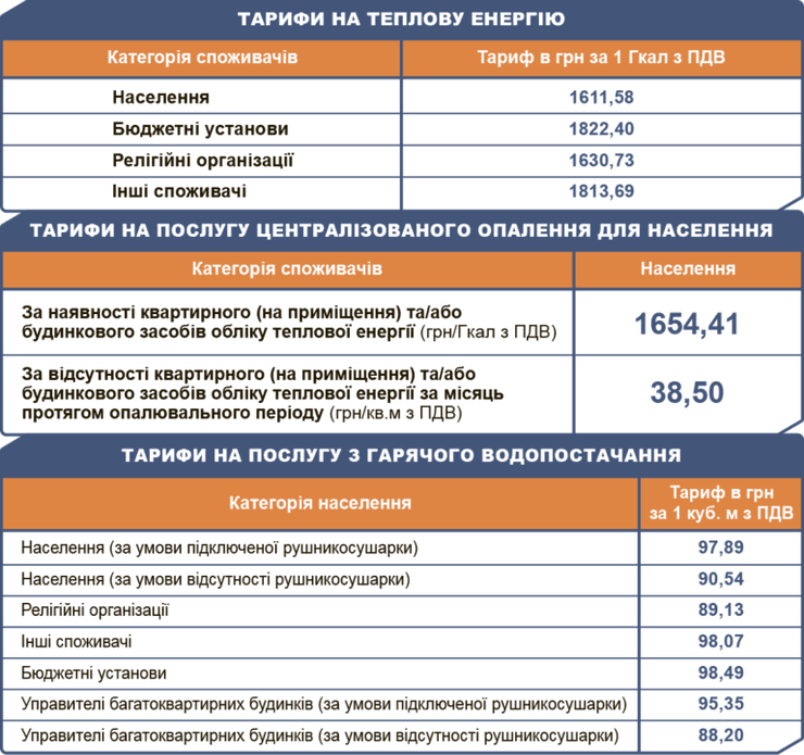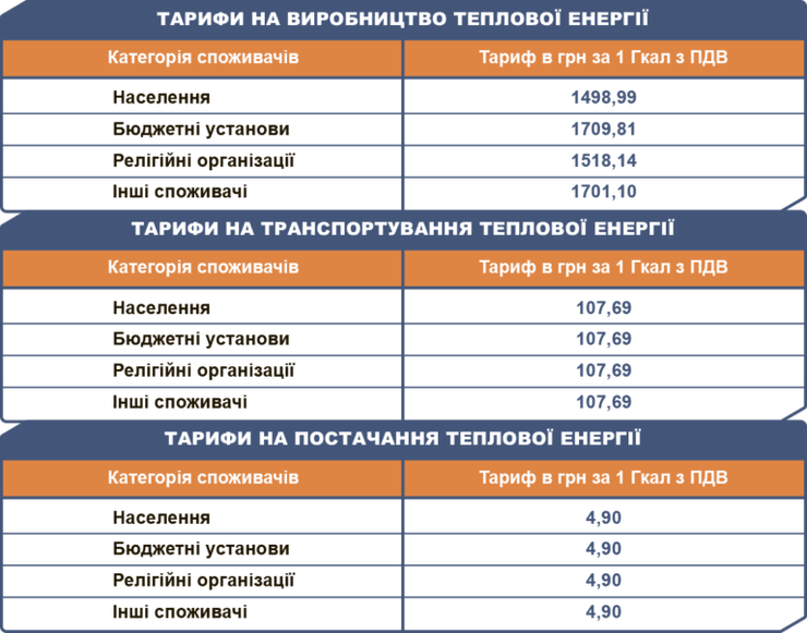 Так, с 1 мая 2019 года население будет платить за тепловую энергию 1611,58 грн за 1 Гкал, бюджетные организации - 1822,40 грн за 1 Гкал, религиозные организации- 1630,73 грн за 1 Гкал, а другие потребители - 1813,69 грн за 1 Гкал.